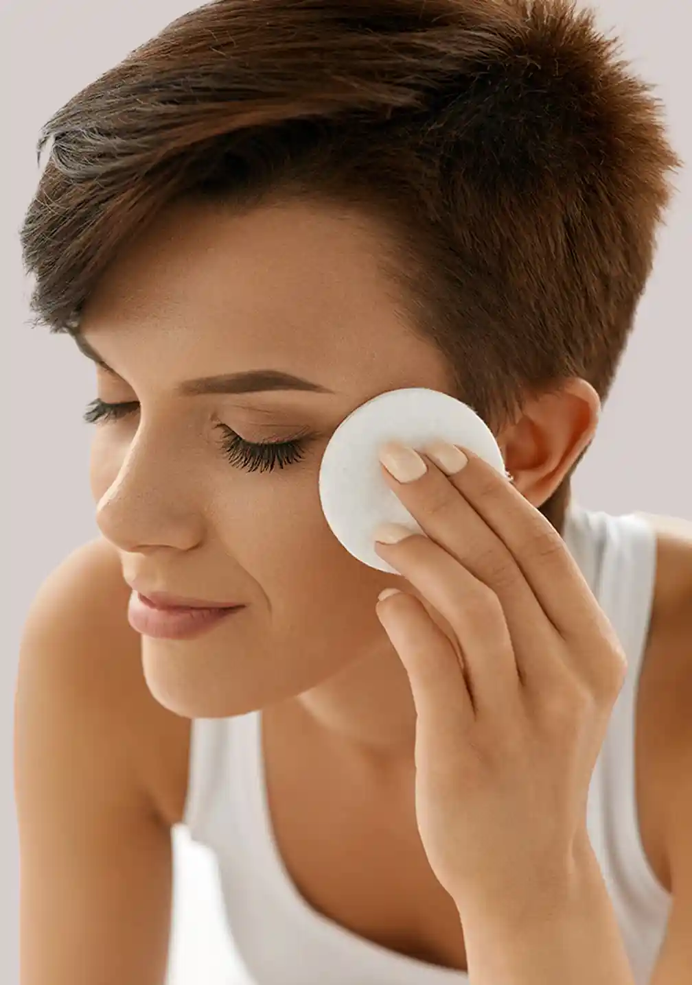 Mettere il nostro Neutralizzatore RAU AHA su un dischetto di cotone, passarlo sul viso e farlo assorbire.